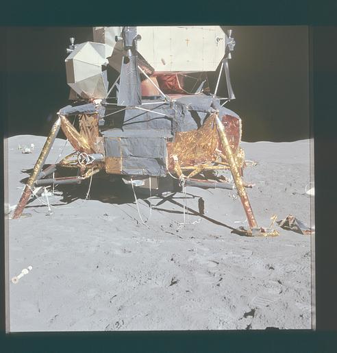 Если и это вам нипочем, все будете настаивать на некой "пневматической подушке", подбрасывающей взлетный модуль - посмотрите вот фото, тут удобный ракурс модуля А15 на "луне": as15-87-11839